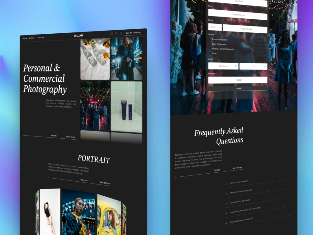 This flexible and beautifully designed template is perfect for photographers offering multiple services who want an easy-to-manage website without the hassle of coding.